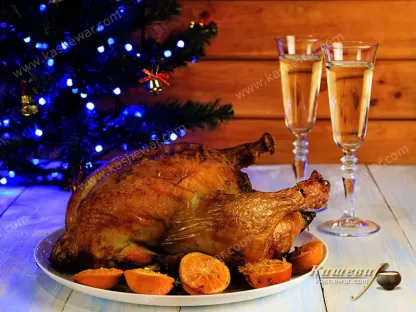 - Запечённая утка с яблоками и апельсинами. Сочная утка с ароматными фруктами — классика рождественского стола. Фрукты придают мясу нежность и лёгкую кислинку, а хрустящая корочка радует глаз.